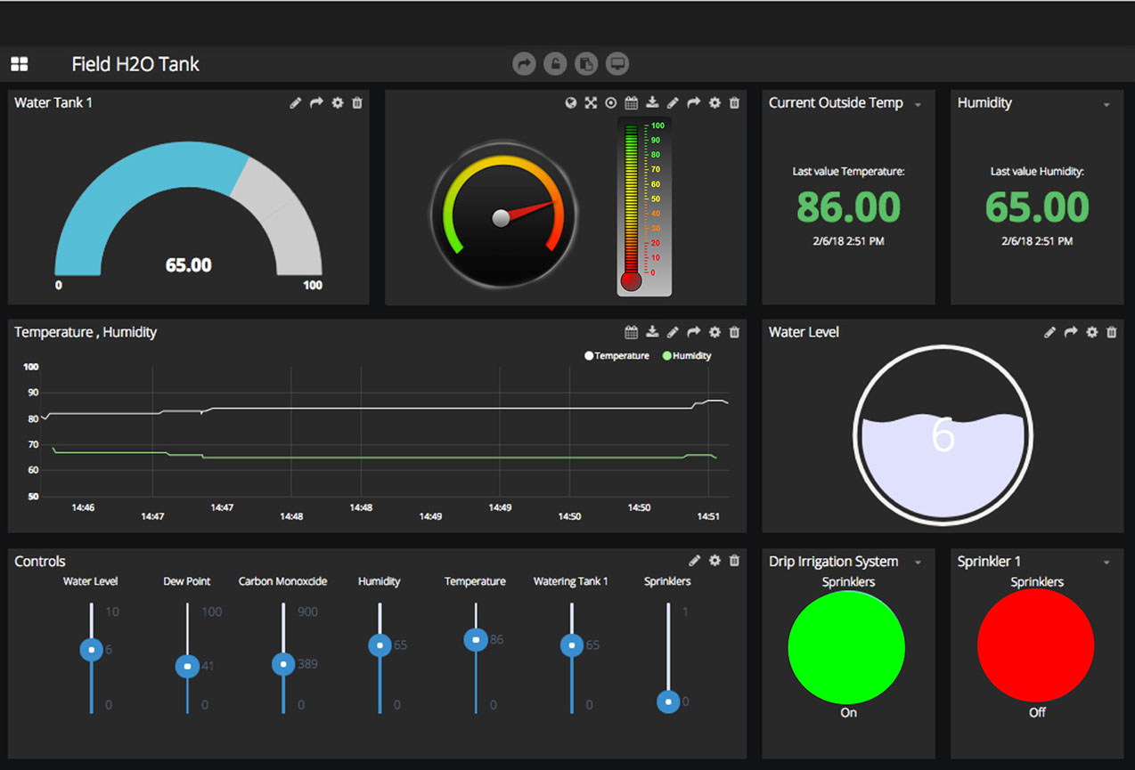 UI/UX widget library, you can specify the layout of your dashboard that connect to your sensors. You could have as many dashboards you want. You can make a dashboard/widget public and can embed into 3rd party websites.